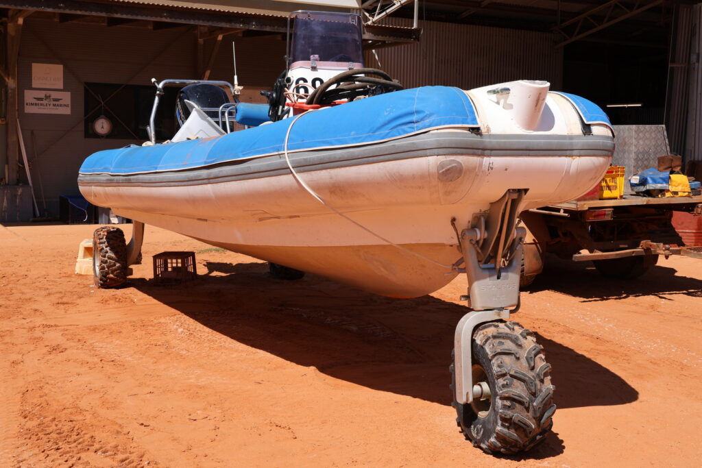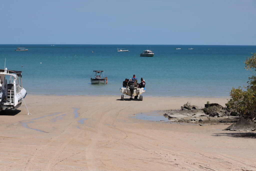 Wir sind auf einer Perlenzuchtfarm. Ebenso interressant sind die Boote mit Rädern.